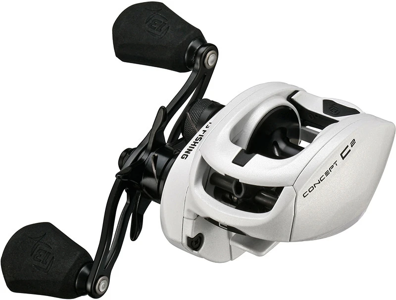 Bringing advanced materials and a feather-light construction into the second generation “Concept” series of baitcasters, the 13 Fishing Concept C2 Baitcasting Reels are loaded with tech for unrivaled performance. Weighing in at an astoundingly light 5.89 oz, the Concept C2 is a reel you’ll want to cast all day and never put down. The C2’s frame is built from a brand new Cast Iron Carbon material that is 100% corrosion proof but fishes as if it were metal. This high strength, extremely low flex material coupled with state-of-the-art engineering is the key to the rock-solid feel and performance. Inside, the reel substitutes traditional gearing for an all new Ti-Armor Aluminum drive gear that is 3X more resistant to environmental wear. Featuring an enhanced Bulldog Carbon Drag system, the concept C2 puts out an astounding 25 lbs of stopping power that will be more than enough to put the brakes on any freshwater or inshore trophy. A new Low-Friction Braking system that provides anglers with smaller, more relevant adjustments for all lure weights lets you enjoy the reel’s lightweight castability with the vast majority of your lure arsenal.