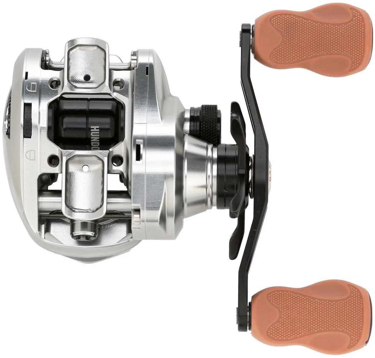 With a gunmetal grey anodized finish, the Bates Fishing Hundo Baitcasting Reels are a 100 sized baitcaster perfect for lighter lures and more finesse rated line. A dual braking system (centrifugal and magnetic) new to Bates reels was incorporated in this reel, delivering great control for the angler deliver the perfect cast. The Hundo just like many other Bates baitcasters starts its life from a CNC precision cut 6061-T6 bar stock aluminum, constructing a one-piece frame for best rigidity. This rigidity mitigates any frame flex the reel could have, providing a solid structure for its internal gearing to operate more efficiently in. Physically light weight yet strong aluminum gearing was used to achieve this reel seriously lightweight form, while 10 HAC Stainless Steel bearings furnishes a buttery smooth retrieve. An 88mm aluminum paddle handle with gum rubber grips is comfortable and grippy to use all day for seasons to come. Overbuilt with quality components to take on all the adventures to come, the Hundo Baitcaster is the ultimate option for anglers looking to fish jerkbaits, topwaters, smaller softplastics and more.