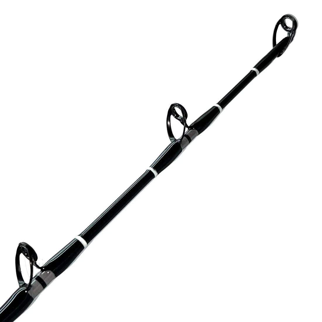 Built to stand up to the demands of big game saltwater fishing, the Blackfin Offshore Elite Deep Drop Rods deliver by combining toughness, craftsmanship, and performance while being available at an incredible value. Each rod in the Offshore Elite line is built with 100% E-glass blanks, giving them the flexibility and durability needed to handle big fish on heavy drags without snapping under pressure. You’ll find stainless-steel Seaguide components throughout, complemented with EVA grips for comfort and added control during long battles at sea. The design is sleek yet functional, with a distinctive gray, white, and black butt wrap and trim that looks sharp, even in brutal boating conditions.
