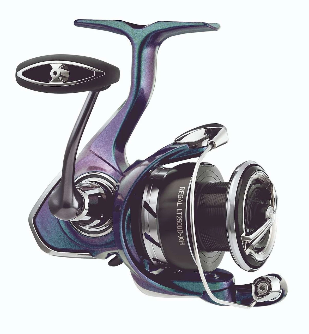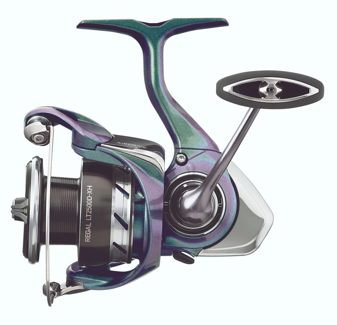 The reels Airdrive rotor further enhances the rigidity and the handling of the reel greatly. Its thoughtfully designed cut-outs eliminate weight without sacrificing strength, while the rotors screwless design reduces weight by and added 15%. The reduced weight lightens up the rotation of the handle, requiring less effort on the angler’s part. The reel is more responsive with every turn of the handle, giving the angler greater control in how they present their favorite baits and lures. With seven different sizes available in the 2024 Regal LT lineup, anglers have a complete range of option for both freshwater and light tackle inshore use. Its features and materials give this reel serious performance, a strong competitor to the market that will remain hard to beat. Elevate your experience on the water with the 2024 Regal LT Spinning Reels from Daiwa.