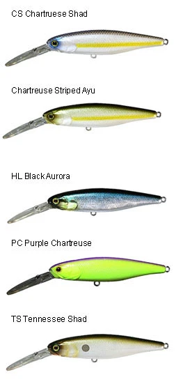 | Size | Chartreuse Striped Ayu, TS Tennesse Shad, HL Clown, Matte Pearl, CS Chartreuse Shad, Ghost SS Shad, HL Aurora Black, PC Purple Chartreuse, Secret Shad, SG Threadfin Shad, SS Shad, Super Shad |
