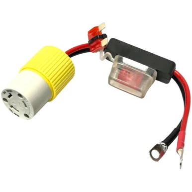 Includes: Hubbell HBL328DCC inline receptacle, 50amp inline fuse, 1 foot of 8 gauge wire, solder lug ends – ready to use for electronic repair of your reel.
