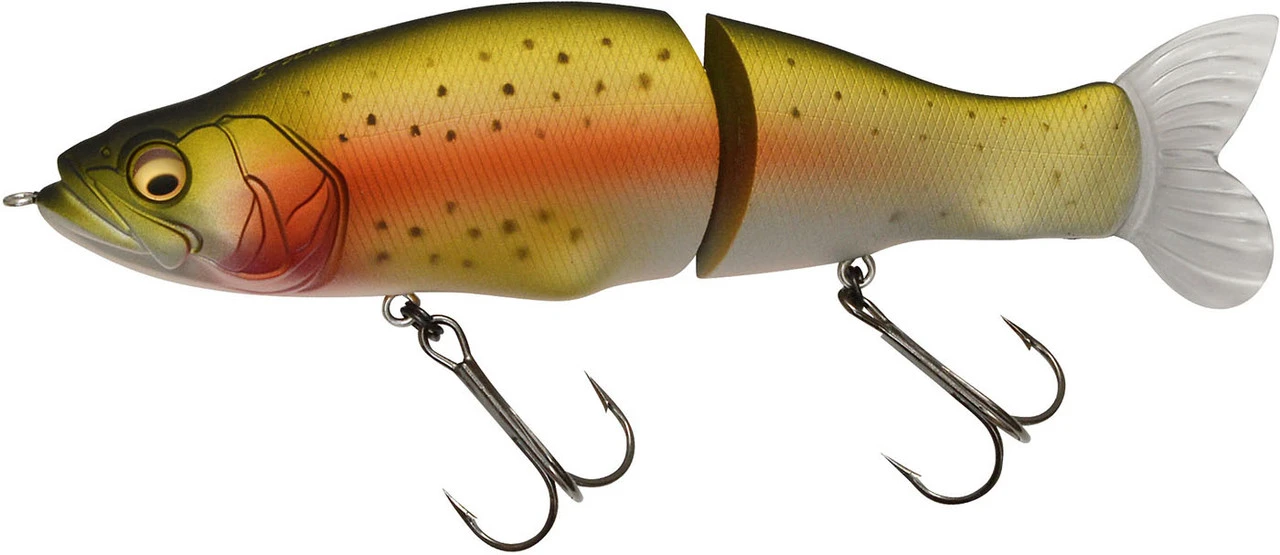 The Megabass I-Slide 135 B Glide Baits bring all-new features to the “S-Motion” swimbait category. The I-Slide 135 is designed to perform a perfect 360 turn with a twitch of the rod to trigger bites from curious followers. The built-in Maghold System generates a magnetic field behind each hook hangar, cradling the needle-sharp treble hooks alongside the I-Slide’s body. This not only eliminates the unnatural profile of dangling hooks for an especially deadly clear-water presentation, but aligns the hook-points for an ideal hookset. Holding the hooks in place also streamlines I-Slide’s motion, allowing for smooth, consistent “S” swimming action during steady retrieve, and reduces slack-line tangles when executing sharp turns and 360-degree action.
