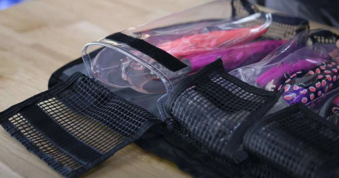 The perfect solution for storing your entire arsenal of lures, the Nomad Design Lure Roll is built with the same quality and attention to detail as Nomad Design’s renowned series of hard baits. The Lure Roll is available in two sizes and made from a heavy duty waterproof tarpaulin material. The Medium size has 6 clear pockets for a maximum storage capacity of up to 12 DTX Minnows or 15 Madmacs, while the Large size features 10 pockets with enough space for up to 22 DTX Minnows or 30 Madmacs. Both bags easily roll up and clip together for a compact storage solution. Clear pockets allow for easy lure identification and feature a heavy duty mesh top and bottom for easy rinsing and cleaning of your lures. The bags even feature hanging tabs for drying your lure pack once it’s been rinsed off.
