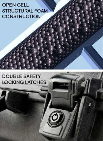 - Double safety locking latches with keys.