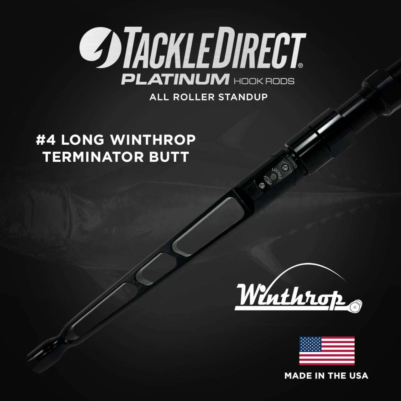 Built and ready to handle a wide variety of techniques, tactics, and the target species that go along with them, the TackleDirect Platinum Hook All Roller Standup Rods give the angler a premium tool for their next offshore trip. The rod starts with its heavy-duty Winthrop Terminator Adjusta-Butt, making for an option that easily coverts from straight butt to a bent butt with one click of the button. Anglers can fight fish in the way they want to, as well as pack the rod much more easily for storage or going on their next trip. Outfitting the length of the rod blank are heavy-duty Winthrop X-Caliber Roller Guides, each with a one-piece frame that is designed to flex with the load of the blank and not give up any bit of inherit strength. Stainless-steel rollers compliment frames, aiding in efficient line flow while providing easy knot and terminal clearance for more offshore orientated applications.