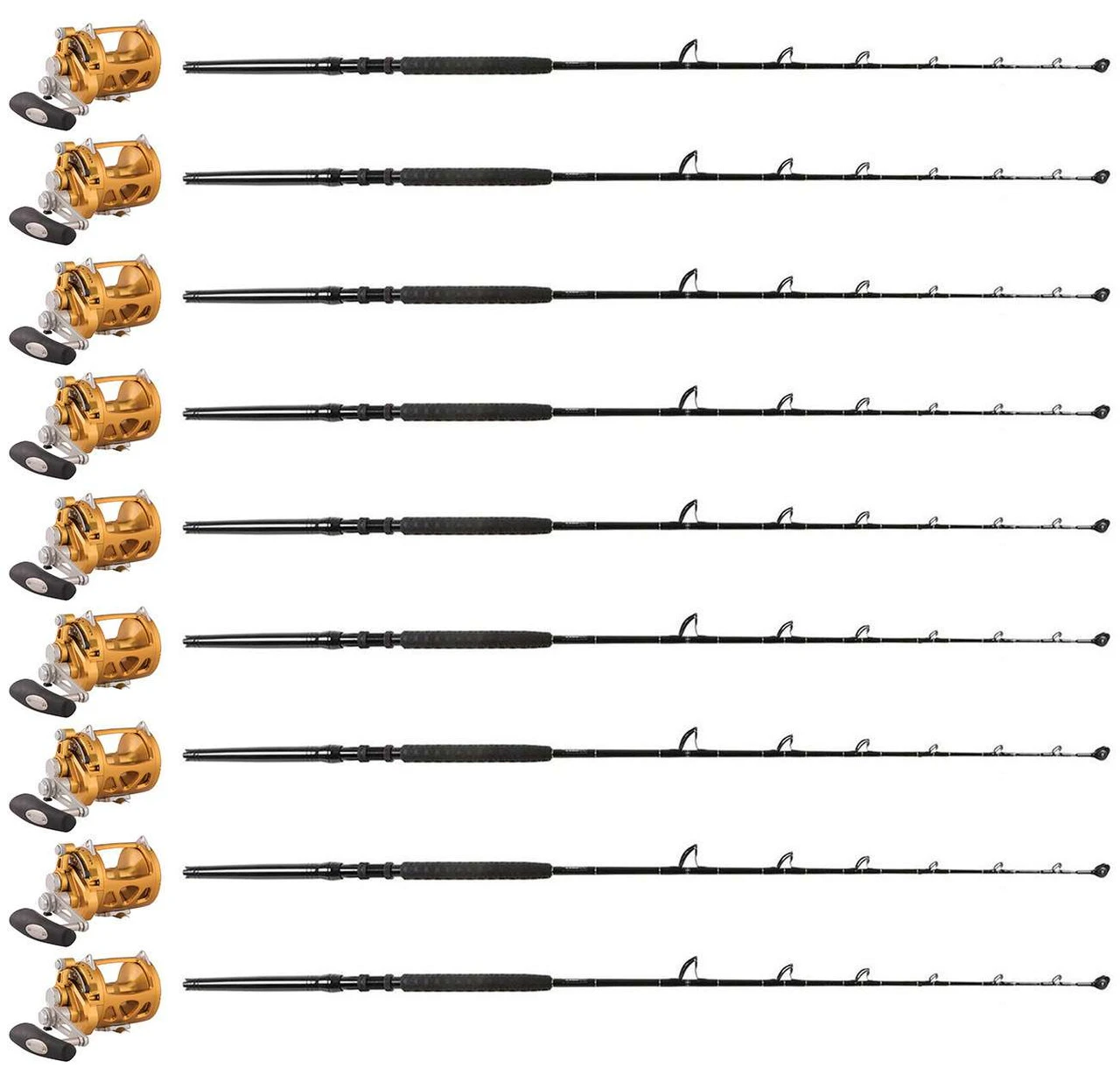 Matching some of the industries best conventional reels with an expertly crafted big game rod, the TackleDirect Platinum Hook Winthrop Tip Standup Canyon Ready Packages offer an incredible value to anglers looking to outfit their boat for serious fishing ahead! Anglers can pick their favorite options from Shimano, Penn, and more, packaged with a TackleDirect Platinum Hook Conventional Winthrop Tip Standup Rods, filling your spread completely. Whether you are a hardcore tournament angler or simply a weekend warrior looking for professional gear, the Canyon Ready Combo Packages from TackleDirect are ready to exceed expectations on the water!
