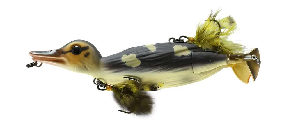 Savage Gear 3D Suicide Duck Lures are designed for targeting pike, musky, and bass species. These lures mimic real life fleeing ducks. These lures are equipped with spinning feet that throw water and every direction. This attracts big game fish from far distances. These lures are rigged with top and bottom hook configuration. The perfect set up for an angler to customize their bait for many fishing conditions.