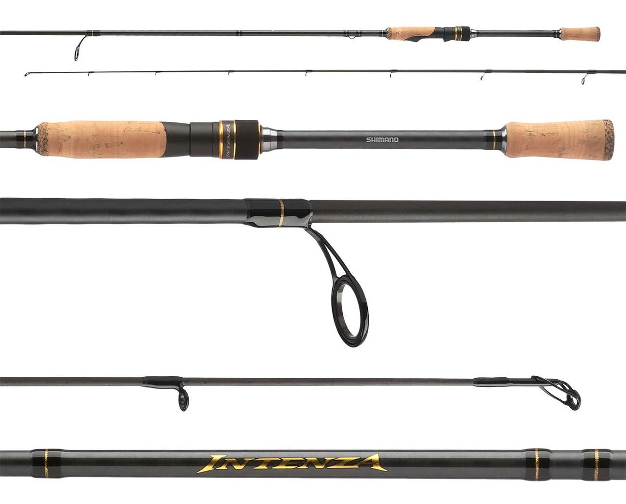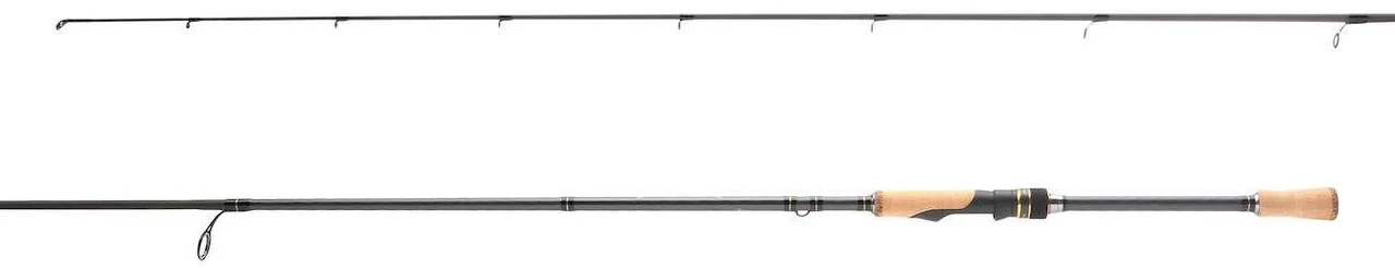 With a full lineup of rods offered in the series to dominate the local waters with power and finesse techniques alike, the Shimano Intenza A Spinning Rods deliver great capability for the weekend warrior and tournament trail angler alike. These rods utilize Shimano’s Diaflash technology in the lower portion of their blanks, a process where opposing wraps of carbon tape are introduced on the outermost layer to form and x-shape pattern. This in turn reinforces the butt section of the blank to resist twisting, flexing, and energy loss. Casting performance and pulling power are enhanced with this technology, giving the angler a competitive edge over the rest. Cork grips, light titanium oxide guides, and a custom Shimano reel seat complete the package, set to improve your game on the water day in and day out.