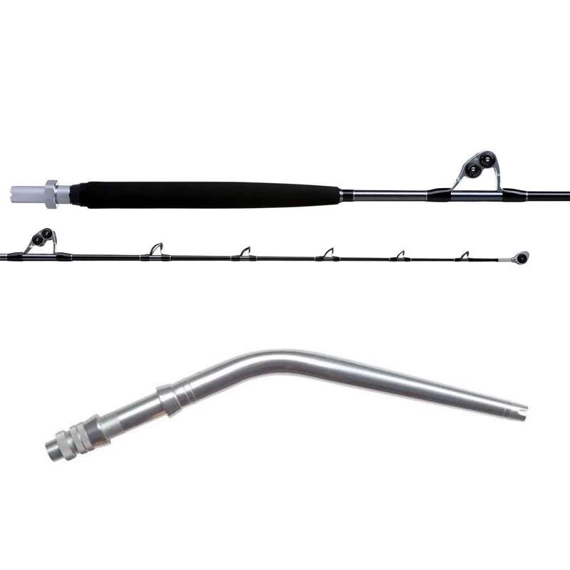 Constructed of the finest marine grade alloy aluminum, the Aftco Curved Unibutt serves as the stable platform that both reel and rod blade easily secure to. Through Aftco’s unique “swaging” process, the aluminum butt is “unitized” to the reel seat, creating a connection which maximizes strength with minimum weight. The aligning pin-plug gimbal and fixed hook are locked in permanent alignment so that the gimbal, reel, and rod guides always align up exactly. The ferrules are precision-machined for complete interchangeability with rod tip sections, and an O-ring on the ferrule prevents corrosion between the ferrule and the reel seat. A Teflon ring inside the collet nut assures snug fit, prevents galling, and allows for easy removal of the nut. Available in several different styles and colors, the Aftco Unibutts are a simple, high-quality component, ready to complete your rod and give you seasons of use if not a lifetime to come.
