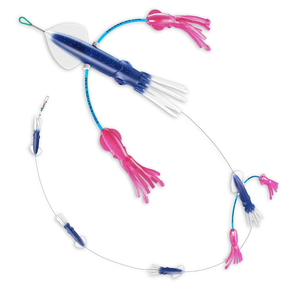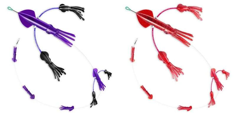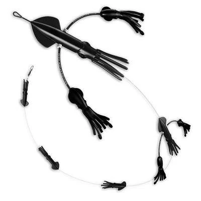 The Squidnation Billfish Edition Flippy Floppy Thing is simply the flipside of the original Flippy Floppy thing. In other words, it’s a scaled down version of Squidnation’s original Flippy Floppy Thing. This version is made for smaller billfish. This flippy floppy thing is perfect for targeting black marlin and white marlin species. This version of the flippy floppy is made with 2 flippy floppy squids and 3 regular squids in-line.