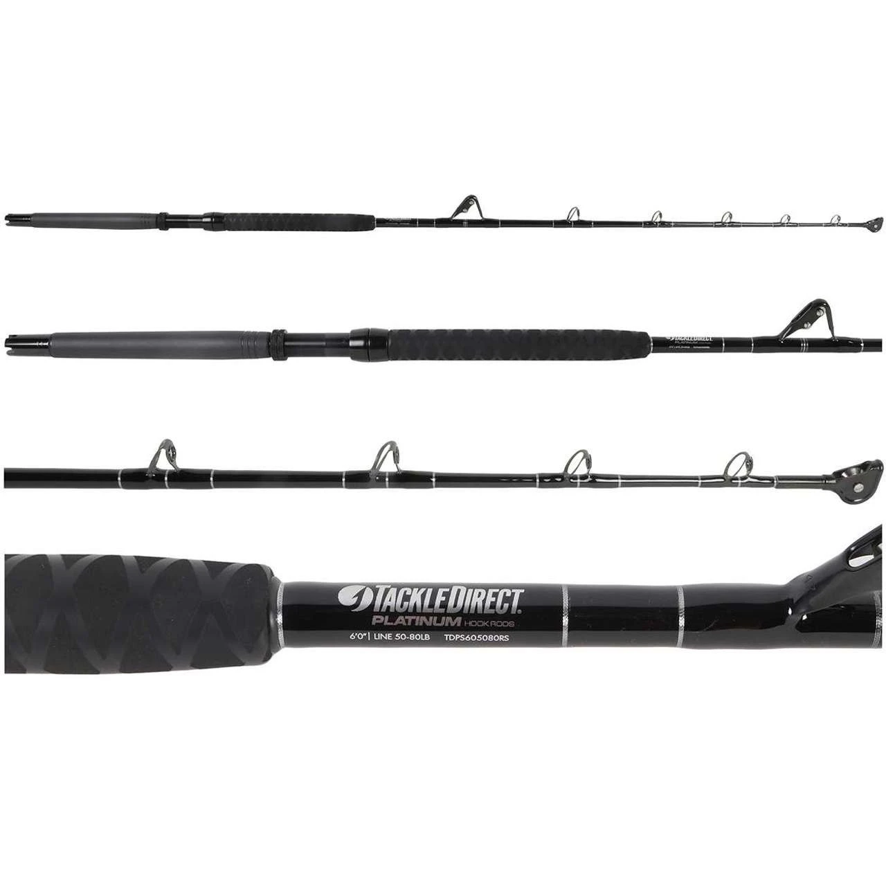 The TackleDirect Platinum Hook Roller Stripper Standup Rods are built to handle some of the world’s most demanding offshore trolling applications. These highly capable trolling rods leverage a super durable E-glass blank construction equipped with premium components to offer top-of-the-line performance for an affordable price. Each model is fitted with an aluminum reel seat and slick butt. The 30-50lb rod features an Aftco HD Roller Stripper and Tip, while the 50-80lb rod is equipped with an Aftco Wind-On Stripper and Tip, allowing for trouble free use with your choice of braid, monofilament, or braid backing with a mono topshot. These rods are ideally paired with any 30W or 50W reel for your heavy stand up trolling and chunking applications when targeting large tunas and other hard fighting pelagics. They also double as perfect blue marlin pitch rods or high speed wahoo trolling rods, making them a versatile option for any offshore angler’s arsenal.