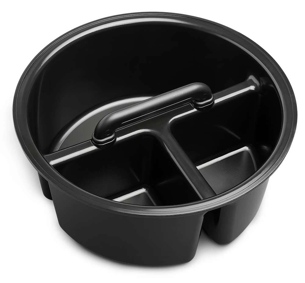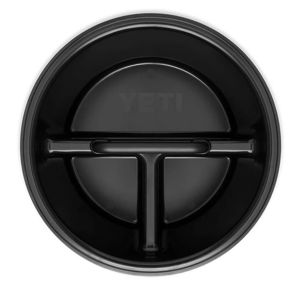 The YETI Loadout Caddy is made to fit with the YETI Loadout Bucket. It resists cracks and breaks. It’s a 3 compartment caddy that fits tightly into the Loadout Bucket right below the top of the bucket. It features a retractable grab-and-go handle and is compatible when YETI’s Loadout lid is in use.